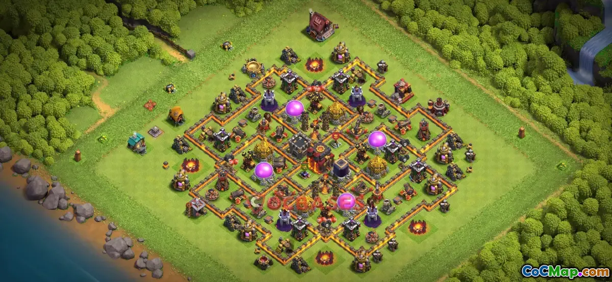 This Town Hall 10 farming base in Clash of Clans is designed to focus on resource protection while still maintaining a solid defense structure. It typically features well-placed storages and traps to prevent attackers from easily stealing resources like gold, elixir, and dark elixir. The layout is optimized to slow down or divert enemy troops, increasing the chances of a successful defense and minimizing resource losses during raids.