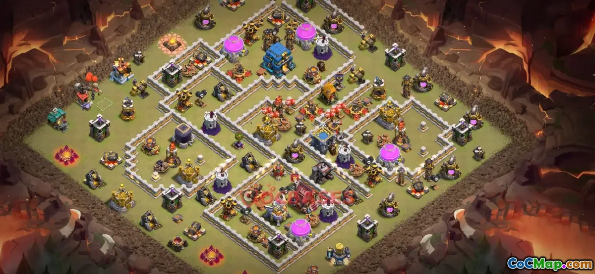 The Town Hall 12 war base in Clash of Clans is designed to provide strong defenses and protect valuable resources during clan wars. It typically features well-planned layouts with strategically placed walls, defensive buildings, and traps to deter opponents from successfully attacking. The goal is to create a balanced base that can withstand attacks from a variety of troop combinations, minimizing the potential for high damage or resource loss.