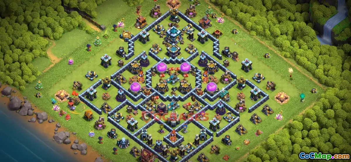 The Town Hall 13 farming base in Clash of Clans is designed primarily to help players gather resources efficiently while minimizing the risk of losing them during attacks. This type of base layout strategically places resource storage buildings in protected areas, often within the core or behind multiple layers of defenses, making it harder for enemies to raid and steal resources. Players use these layouts to defend against common farming attacks and maintain steady resource income to upgrade buildings and troops.
