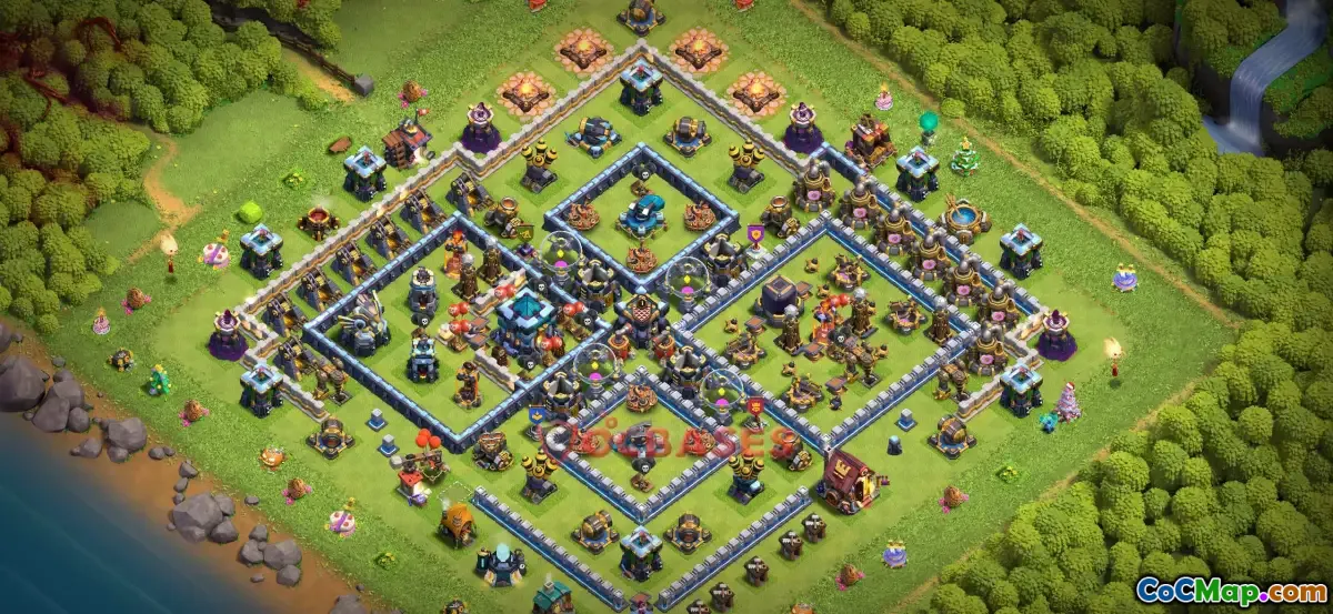 This Town Hall 13 farming base is optimized to safeguard your valuable resources during low trophy pushes and farming sessions. Its strategic placement of defenses, storages, and traps provides robust protection against common attack strategies, helping you maintain resource integrity clear of raider loot.
