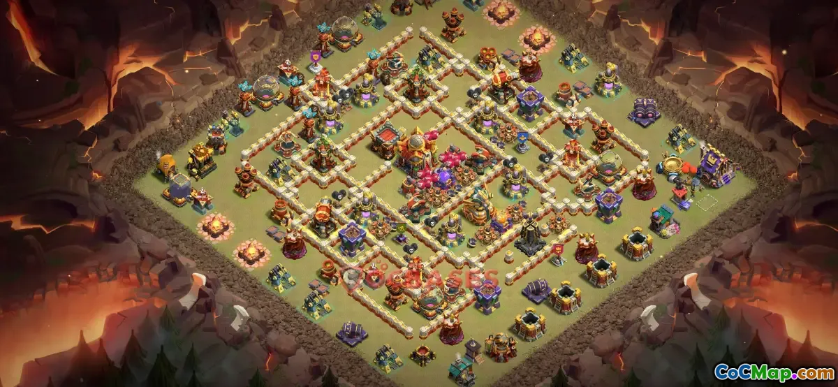 The Town Hall 16 war base in Clash of Clans is a strategic setup designed to defend against enemy attacks during clan wars. It incorporates various defensive structures such as upgraded archer towers, cannons, and air defenses to create a balanced defense. The layout typically emphasizes protecting key resources and the Town Hall itself, making it difficult for opponents to achieve a high percentage of destruction or to secure a three-star victory.