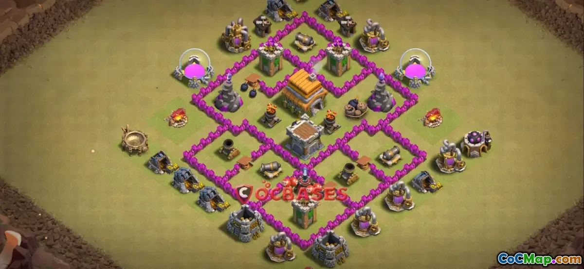 Discover the ultimate Town Hall 6 war base designed for Clash of Clans! Compact, anti-ground strategy with a copy base link for easy setup. Upgrade your defense!