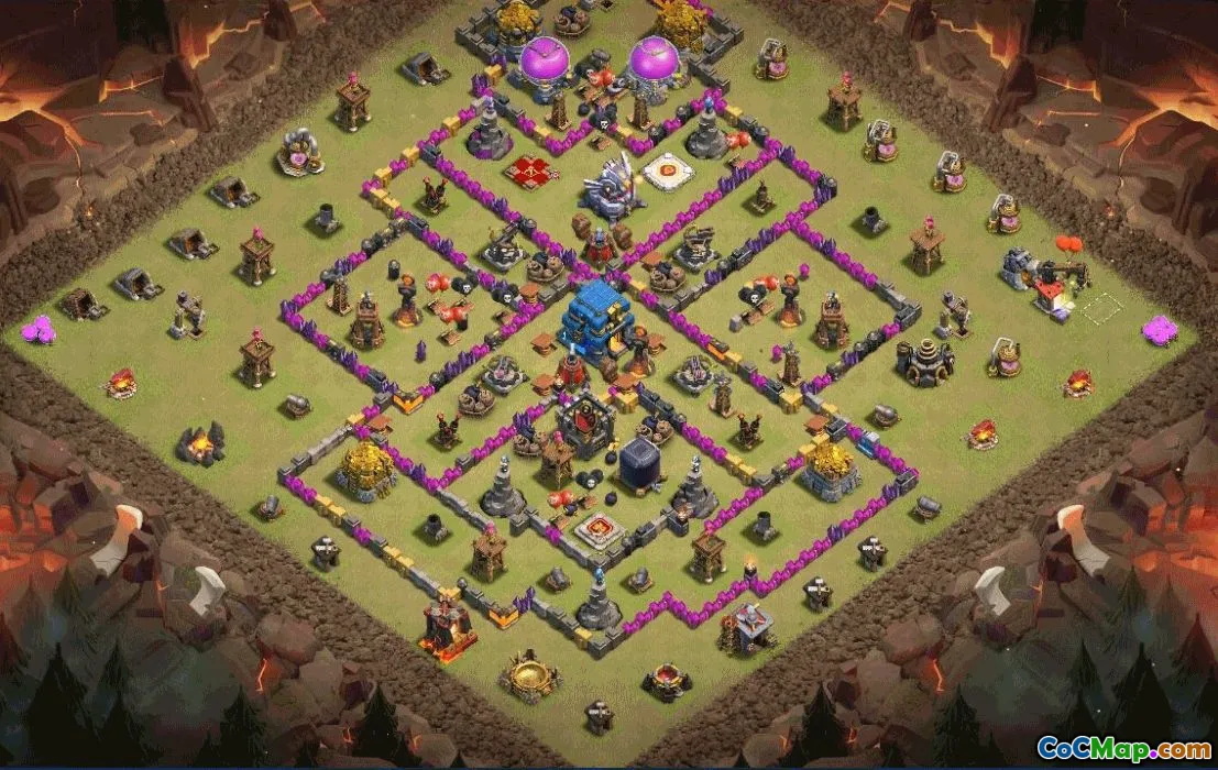 The layout provides various options tailored to different gameplay styles, such as a trophy base, war base, or general home village setup. A trophy base layout aims to protect trophies by centralizing key defenses, making it difficult for attackers to steal trophies easily. War base layouts focus on protecting the clan's war stars, often by spreading out defenses or creating traps to counter common attack strategies. The home village layout balances resource protection with defense mechanisms to ensure a safe and steady gameplay experience.