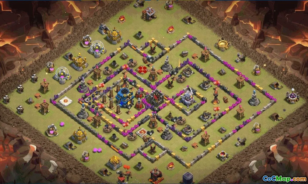 In addition to the different types of bases, the collection also features a detailed Clash of Clans map that showcases the overall topography of base placements. This allows players to understand the terrain and structural placements better, helping them to defend more effectively against attacks. The availability of multiple base layouts ensures players can easily find arrangements that match their current level, gameplay style, or strategic focus.