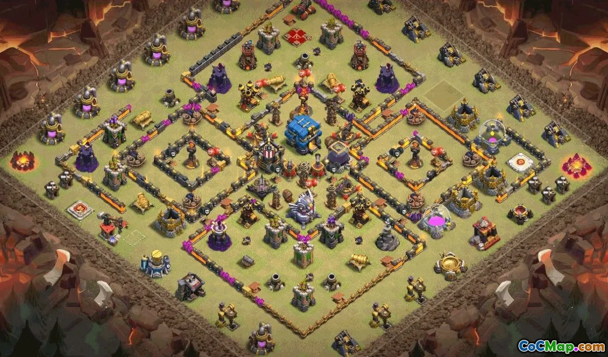 The collection includes various types of bases such as trophy bases, war bases, and general home village layouts. Trophy bases are optimized for defending trophies during multiplayer battles, while war bases are specifically designed to protect key buildings during clan wars. The map and layout structures are carefully crafted to prevent attackers from easily gaining victory, while also allowing players to adapt them according to their specific needs and strategies.
