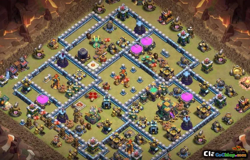 Метка 14 -го зала посвящена стратегическому размещению зданий, оборонительных сооружений и ловушек, которые жизненно важны для защиты ресурсов и поддержания трофеев. Игроки могут исследовать различные базовые дизайны и карты, которые обслуживают разные стили игры, независимо от того, сосредоточены ли они на максимизации защиты или создании сбалансированной планировки, которая поддерживает как оскорбление, так и защиту во время войн. Обмен и доступ к базовым макетам стал активностью сообщества, и игроки часто торгуют стратегиями и проектами в Интернете.