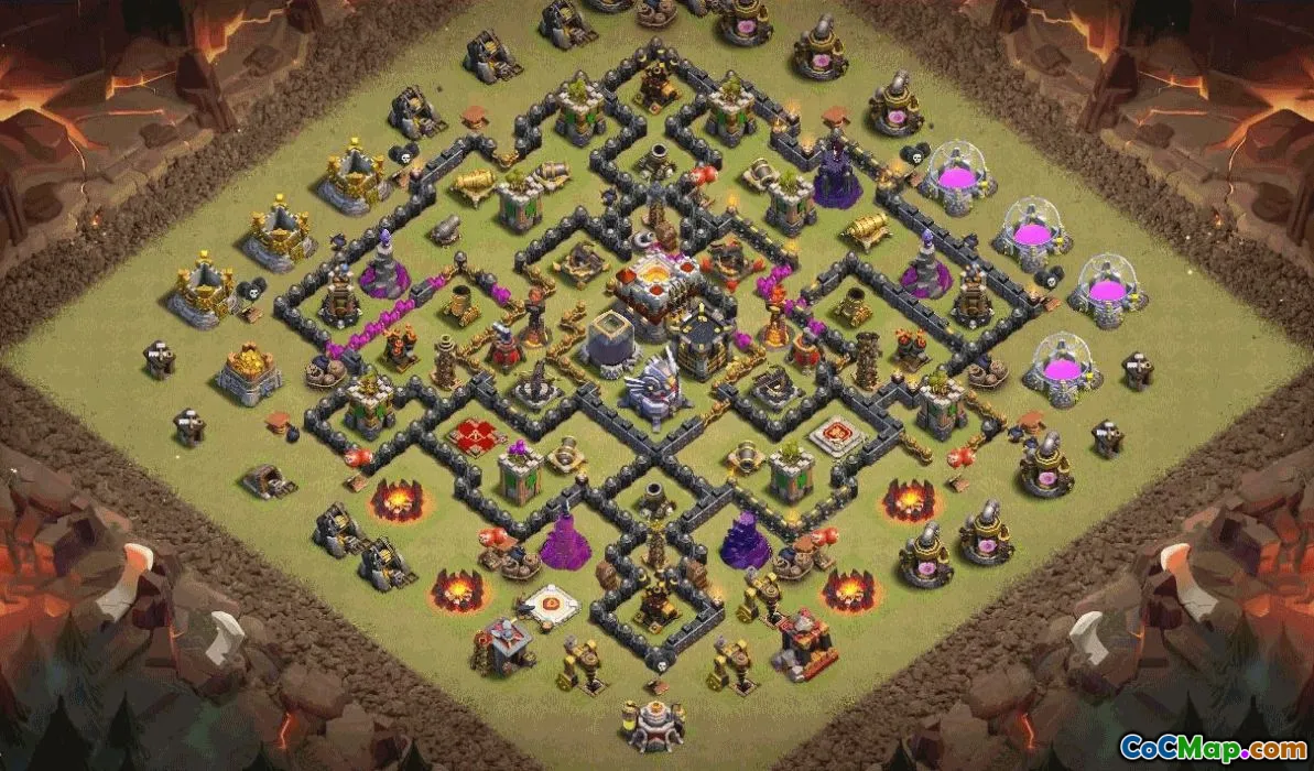 Explore a ready-to-use Town Hall 11 base layout with links for home village, trophy base, and war bases, plus a detailed CoC map and copyable layouts.