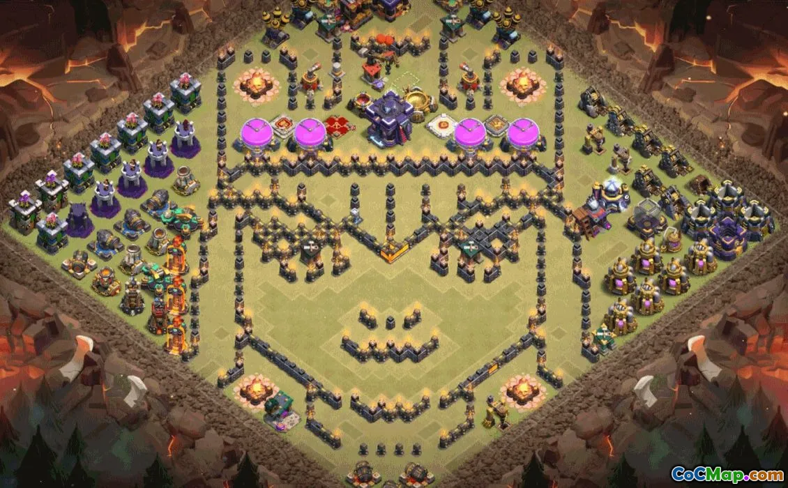 The Town Hall 15 base blends humor with solid defense, supporting both farming and progression goals. It features a compact core, smartly placed traps, and balanced air and ground defenses that work across CoC map layouts. With separate compartments and resource paths, this design stays robust in wars while remaining friendly to casual players.
