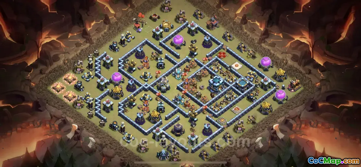 The best anti-three-star war base design for Town Hall Level 13 (TH13) has been developed to effectively defend against attacks, particularly those utilizing air units such as Electro Dragons. This specialized layout is crafted for Clash of Clans (COC) players who aim to protect their bases during Clan War Leagues (CWL). With the increasing prominence of air troops in various strategies, having a robust anti-air defense is crucial for maintaining a competitive edge in war scenarios.
