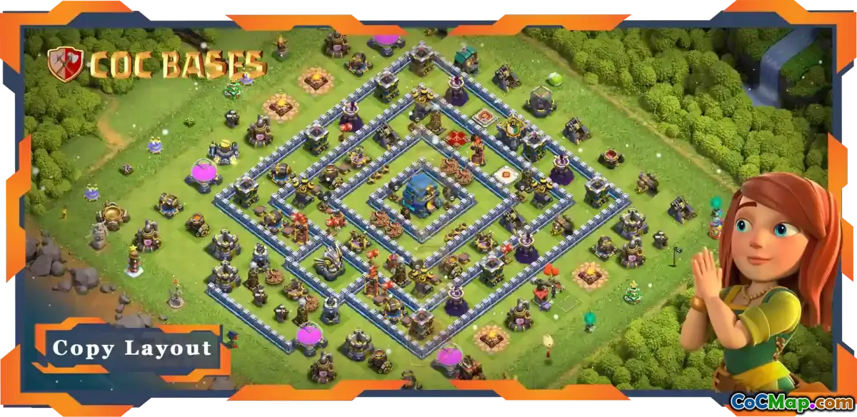 The base layout incorporates strategic placement of buildings and traps to maximize defensive capabilities. Key defensive structures, like Inferno Towers and Eagle Artillery, are typically positioned in ways that can target both air and ground attacks effectively. This careful configuration of defenses makes it challenging for opponents to breach the base, especially those who rely heavily on air units such as Electro Dragons.