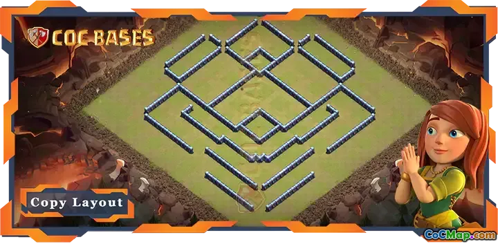 Кроме того, планировка включает в себя множество защитных построек, ловушек и стен, стратегически расположенных по секциям. Эти элементы работают вместе, чтобы создать мощную защиту от различных типов атак. Конструкция включает в себя как защиту с высоким уровнем урона, так и вспомогательные конструкции, гарантируя, что злоумышленники столкнутся со сбалансированным и сложным защитным ответом, независимо от выбранного ими подхода.