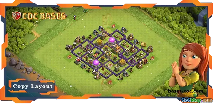 With this layout, your TH7 base offers improved protection for your resources and Town Hall, making it difficult for attackers to break through. The inclusion of traps and strategic placement of walls enhances its durability. Access the link below to see the detailed map and learn how to implement this powerful anti-air, hybrid defense layout to strengthen your Clash of Clans base today.