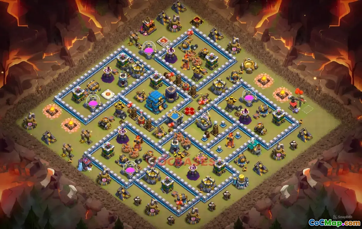 Военная база Town Hall 12 в Clash of Clans создана, чтобы помочь игрокам защищаться от атак противника во время войн. Эта конкретная конфигурация имеет решающее значение для игроков, стремящихся защитить свои трофеи и максимизировать свои шансы на победу в военных сражениях. Продуманная планировка может существенно затруднить противников, затруднив им доступ к ключевым сооружениям, особенно к самой Ратуше.