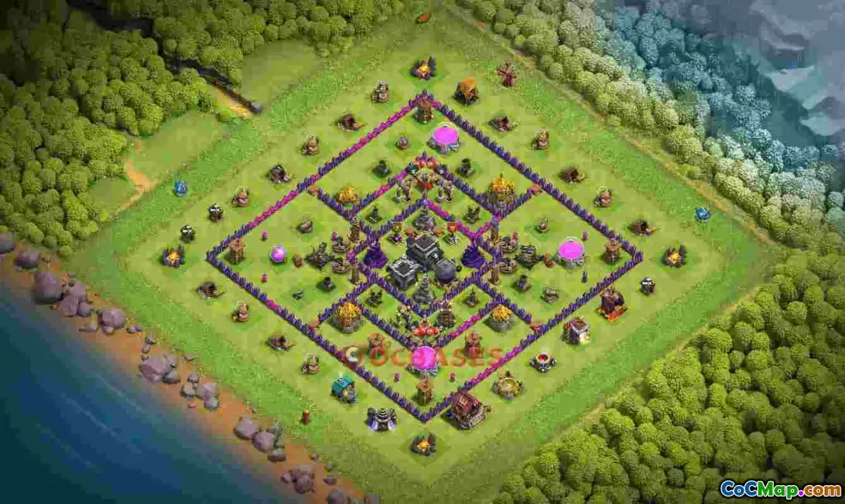 Ideal for players focusing on trophy gains or war defense, this layout effectively counters Pekka attacks and includes anti-2 star features. It offers a balanced mix of resource protection and defensive strength, with a dedicated copy link making it easy to implement. Elevate your TH9 gameplay by using this proven layout for maximizing defensive success and resource security.