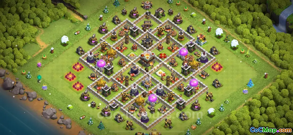 The best anti 2 stars base for Town Hall Level 11 in Clash of Clans is designed specifically to protect against opponents aiming for a two-star victory. This type of base focuses on creating a challenging environment for attackers, making it difficult for them to take down both the Town Hall and the second star objectives. The layout typically features a strong central compartment where the Town Hall is located, surrounded by defensive structures that can fend off various attack strategies.