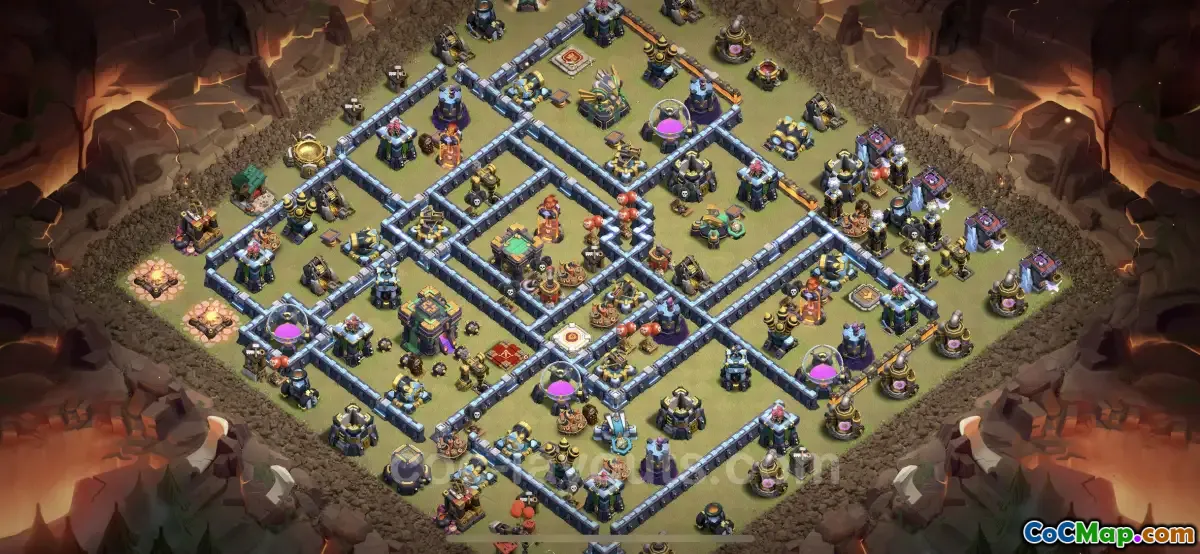 This Town Hall 14 defense base is particularly useful in the Clash of Clans environment, where winning wars is critical for clan success. Its design focuses on spreading defenses and utilizing structures that can protect valuable resources as well as the Town Hall itself. Moreover, this base effectively integrates features such as compartments and defensive buildings that can absorb damage and force attackers to exhaust their resources before successfully breaching the base.