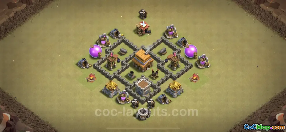 The Town Hall 4 (TH4) basdesign i Clash of Clans (COC) är speciellt framtagen för att försvara sig mot trestjärniga attacker under Clan War Leagues (CWL). Dessa baser syftar till att ge robust skydd genom att effektivt motverka vanliga strategier som används av angripare på denna nivå. En välstrukturerad TH4-bas kan avsevärt förbättra en spelares försvar, vilket gör det till en nyckelaspekt för dem som vill utmärka sig i krig och skydda sina resurser.
