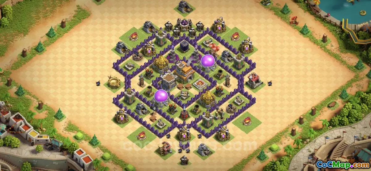 The best strategies for defending a Town Hall Level 7 in Clash of Clans involve designing bases that effectively minimize the chances of losing three stars during enemy attacks. Players at TH7 need to prioritize base layouts that can withstand various attack strategies by distributing traps, defenses, and the Town Hall itself in a way that creates challenges for attackers. This makes it crucial to use specific design techniques to create an anti-3-star base that can hold up against different troop compositions, whether it's a ground or air-based attack.