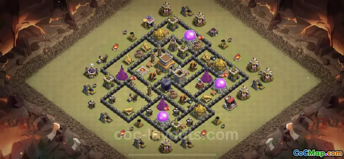 One of the most important elements of a successful TH8 war base is the central placement of the Town Hall and key defensive structures. This strategic positioning ensures that attackers have to go through a series of defenses before they can reach the Town Hall, making it harder for them to secure a full three-star victory. Additionally, effective use of walls can help to compartmentalize the base, forcing enemies to spend more time and troops to break through, thus delaying their overall progress.