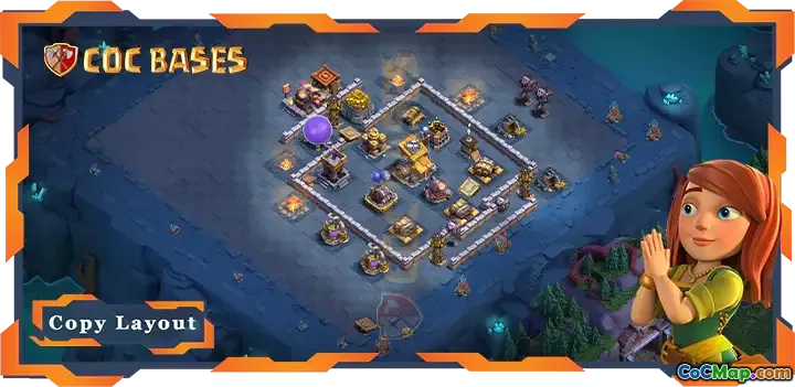 Builder Hall Level 09 baslayout i Clash of Clans är noggrant utformad för att säkerställa maximalt skydd av Builder Hall och det omgivande försvaret. Att strategiskt placera Builder Hall i mitten av basen ger ett robust försvar mot fiendens attacker, vilket gör den till ett kritiskt mål som angripare måste engagera sig i. Organisationen av försvar runt byggarhallen tjänar till att skapa lager av skydd som kan förvirra och bromsa anfallsstyrkor.