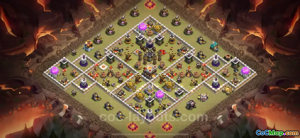 Among the most effective defensive strategies for Town Hall 11 bases is the implementation of anti-air configurations. These designs create a fortified area to protect air defenses from Electro Dragon attacks, which are common due to their powerful and far-reaching attacks. By strategically placing air defenses and traps in appropriate locations, the base can successfully deter these airborne threats, providing a significant advantage during CWL battles.