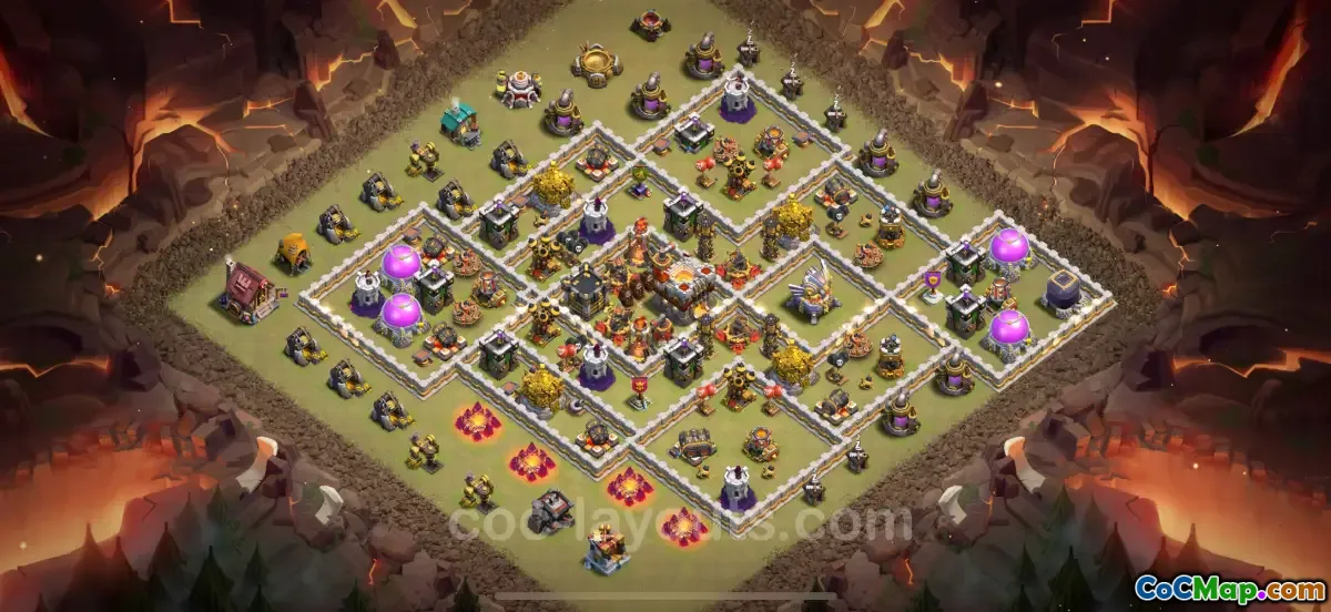 This top War TH11 base incorporates a hybrid defense strategy, combining elements that are effective against both ground and air attacks. By carefully positioning defensive structures, players can create a robust layout that makes it difficult for opponents to execute successful attacks. The integration of air traps, such as seeking air mines and air bombs, contributes to the base's overall effectiveness against Electro Dragons and similar units, ensuring that these aerial threats are neutralized quickly.