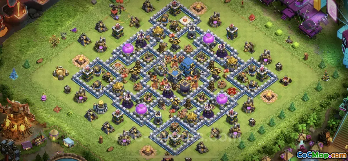 The design is also focused on the arrangement of walls, which play a critical role in diverting enemy troops and slowing down their progress. Walls serve as barriers that protect valuable resources while also delaying attackers, giving defensive measures time to respond. Players need to ensure that the layout facilitates the swift intervention of defensive units while restricting the paths through which enemies can break into the base.