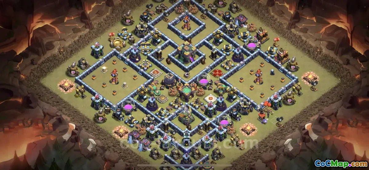 The Best War Base for Town Hall 14 is designed to excel in the competitive environment of Clash of Clans, particularly suitable for players involved in the Legend League. This base layout emphasizes strong defensive strategies to withstand attacks, especially from air units such as Electro Dragons. With a strategic arrangement of structures, the base aims to protect vital resources and the Town Hall itself, which is crucial during clan wars and competitive play.