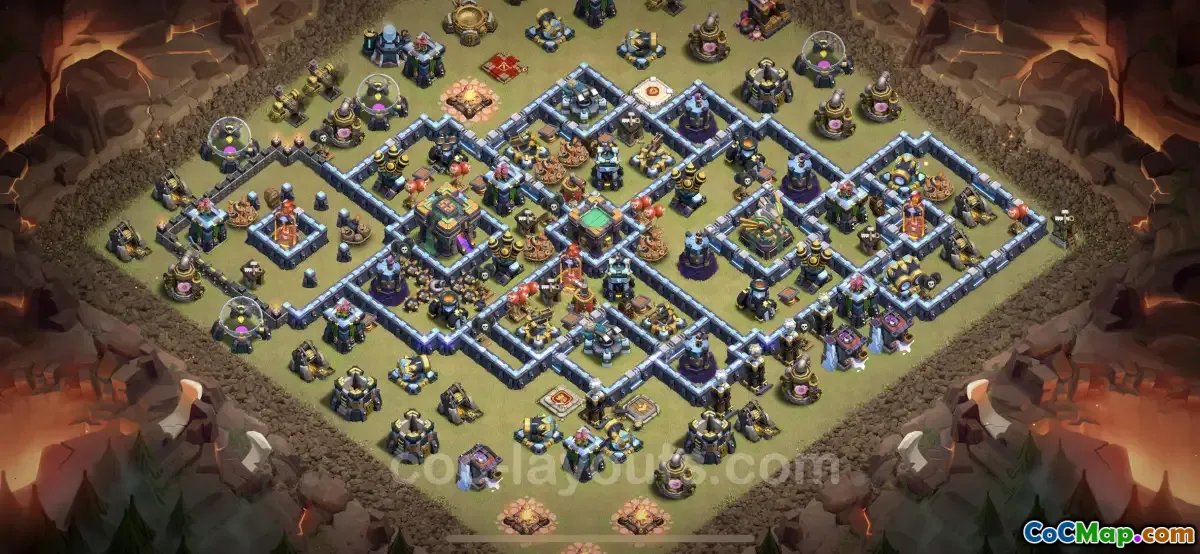 The Best War Base layout for Town Hall Level 14 is designed to provide robust defenses against various types of attacks in the Clash of Clans game. This base layout is particularly effective in the Legend League, where players face a high level of competition. The design aims to counter diverse offensive strategies, ensuring that defending players can effectively safeguard their resources and trophies. By utilizing a combination of defensive buildings, traps, and well-placed walls, this base can resist attacks from all angles.