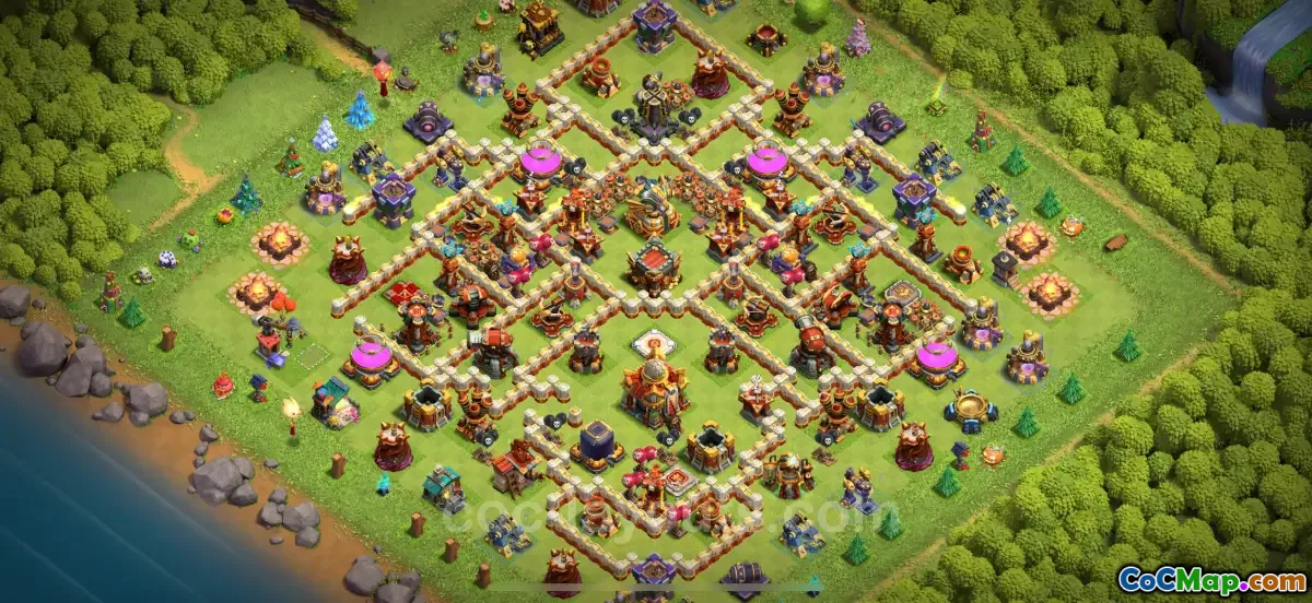 This particular base design, known for its robust defensive structures, offers various features that enhance its defensive capabilities. It encourages proper resource allocation and placement of defensive buildings, ensuring that critical assets are well-protected while maximizing the defensive potential of the base. By utilizing effective walls and traps, players can significantly hinder attackers’ progress and maintain a steady flow of trophies.