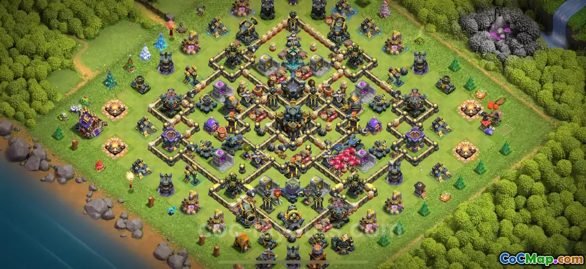 Overall, this setup is tailored to offer the best anti-two-star defense at Town Hall 17, with strategic placements of defenses, walls, heroes, and traps to challenge attackers continuously. The combination aims to maximize the base’s resilience in both attack and defense scenarios, especially in the 2025 seasons of Clash of Clans. Players seeking a reliable hybrid base to protect their resources and trophies at this level can consider adopting this design for improved defensive performance.