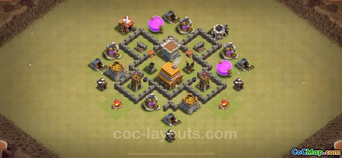 Layouten av denna bas är strategiskt organiserad för att skapa ett stärkt intryck, vilket gör det svårt för angripare att nå nyckelstrukturer. Varje byggnad är placerad eftertänksamt för att säkerställa att försvaret maximeras, medan den centrala kärnan är befäst för att skydda viktiga tillgångar som rådhuset och klanborgen. Den här designen skyddar inte bara värdefulla resurser utan lägger också till lager till försvaret, vilket tvingar angripare att använda fler trupper och resurser än de kanske förväntar sig.