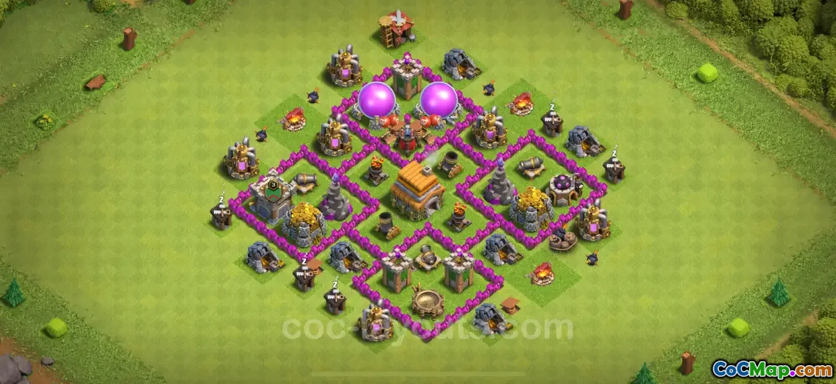 De bästa TH6-basdesignerna har vanligtvis ett centraliserat rådhus, säkrat av defensiva strukturer. Denna centrala positionering gör det utmanande för angripare att nå stadshuset utan att först navigera genom välplacerade fällor, murar och försvarsbyggnader. Dessutom kan spelare optimera sin baslayout genom att strategiskt placera dessa försvar för att täcka de mest sårbara vinklarna och skapa lagerskydd som kräver mer ansträngning för angripare att demontera.