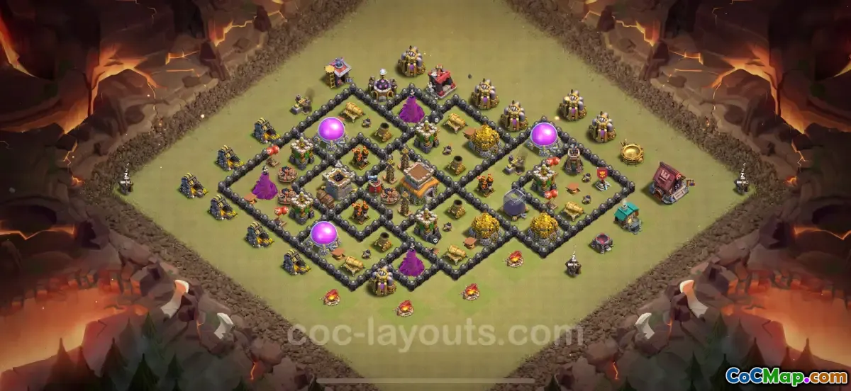 This guide provides insights on constructing the ideal TH8 war base with key defensive elements. The recommended layout incorporates well-positioned defensive structures to create a formidable barrier against various attack strategies. By placing air defenses strategically, players can thwart aerial assaults, which are quite common at this level, making it essential to have a robust anti-air setup.