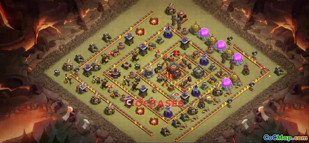 The strategic design of a Town Hall 10 war base typically includes a symmetric layout. By creating balance and symmetry, players can confuse attackers about the most effective routes for their offensive troops. Furthermore, such layouts force enemies to spread their forces thinly, potentially leading to a more efficient defense. Anti-air design elements, like strategically placement of air defenses, contribute to the overall effectiveness of the base, ensuring that attackers cannot easily take down key defensive structures.