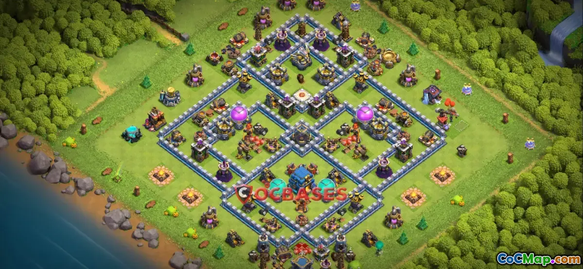Explore the ultimate Town Hall 12 farming base for Clash of Clans! Symmetric design, anti-3 star tactics, and a copy base link for easy setup.