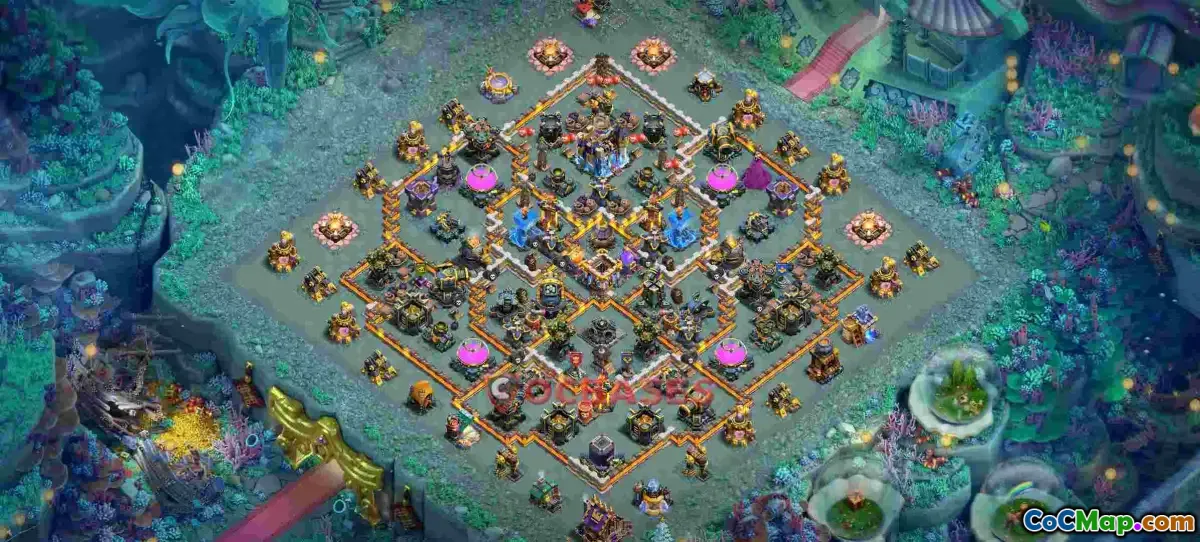 This Town Hall 18 base layout with layout ID mpr8n is specially designed for war defenses, offering strong protection against enemy attacks. Its asymmetric structure makes it difficult for opponents to predict attack paths while providing effective anti-2 and anti-3 star defenses, ensuring your clan’s victory in clan wars.