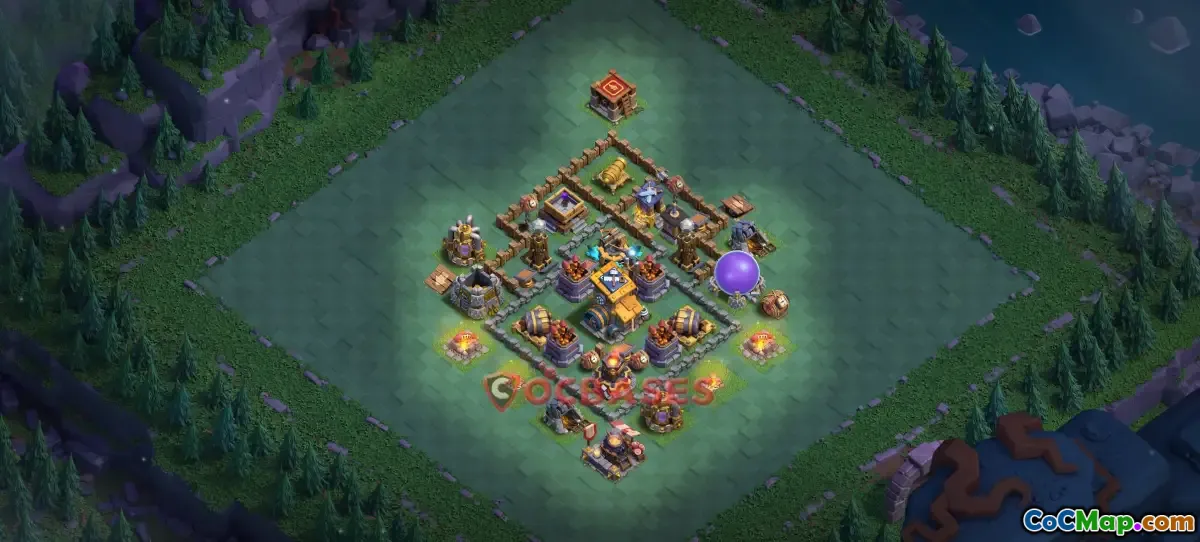With a clean and effective design, this base can be quickly copied using the provided link, allowing players to implement it effortlessly. It's perfect for those seeking a strong defense structure at BH10 to maintain or increase their trophy count and enjoy a well-protected base that looks really nice and functions well in battles.