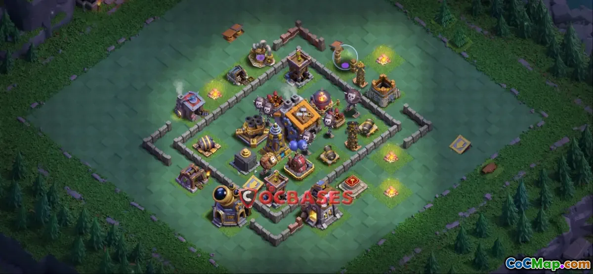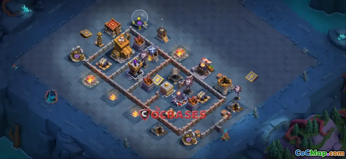 The Builder Hall 9 trophy base in Clash of Clans is designed to optimize defense and protect trophies effectively. Players at this level often seek to maintain or increase their trophy count, and having a well-structured base is key. This particular base layout typically features strategic placements of defenses and traps to create a challenging environment for opponents trying to raid it. The design can minimize the risk of losing trophies by making it harder for enemies to reach the Builder Hall while maximizing the defensive capabilities of the structures around it.