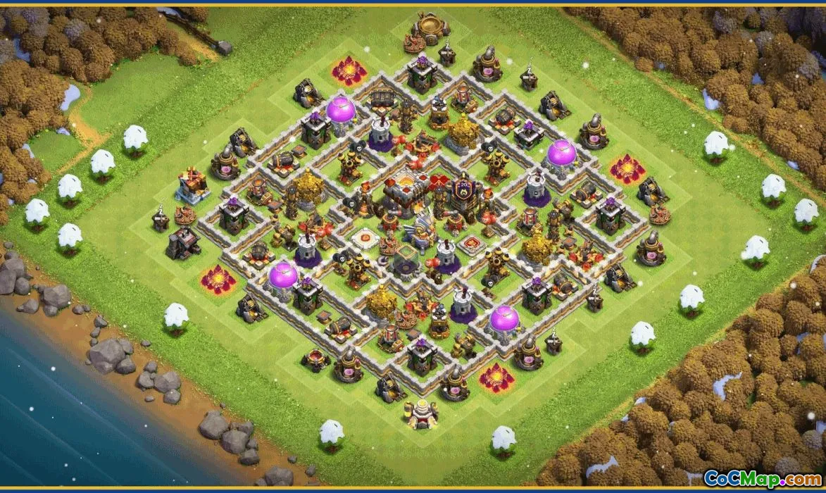 The home village layouts are designed to provide a balanced defense structure, ensuring that key buildings and resources are well-protected against enemy attacks. Trophy bases are typically crafted to defend against high-level opponents and maintain or increase a player’s ranking. War bases focus on thwarting enemies’ attack strategies during clan wars, often emphasizing centralized Clan Castle and Heroes positioning to maximize defensive capabilities.