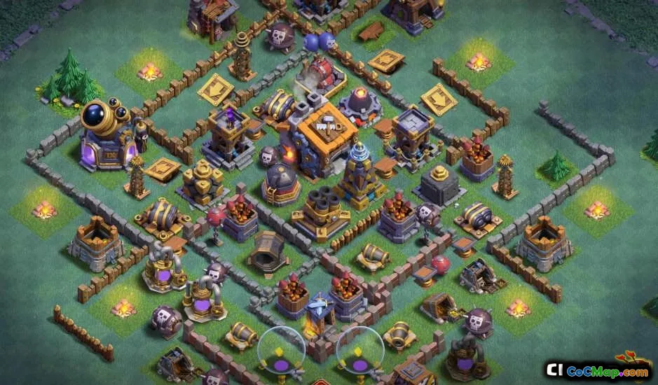 Clash of Clans har olika baslayouter utformade för olika strategiska ändamål, särskilt i byggmästarens basavsnitt. Builder Hall 9 är en betydande nivå där spelare kan optimera sina layouter för att förbättra spelet. De primära målen för baslayouterna inkluderar maximering av resurser i jordbruksbaser, försvara troféer i trofébaser och skapa mångsidiga kartor som är lämpliga för olika stridssituationer. Varje typ av layout tjänar en unik funktion och gör det möjligt för spelare att anpassa sina strategier enligt deras spelmål.