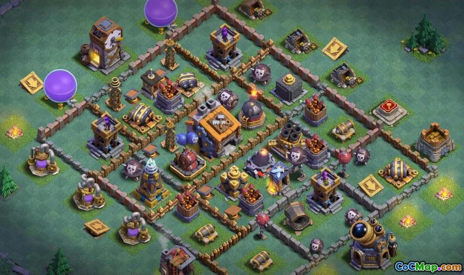 Kopieringsbaslayouten för Clash of Clans i Builder Hall 9 ger spelare en strategisk fördel i spelet. Denna layout är utformad specifikt för byggbasen, som är ett unikt drag i Clash of Clans som fokuserar på en annan uppsättning spelmekanik jämfört med huvudbyn. Builder Hall 9 -layouten syftar till att optimera försvar samtidigt som basen är effektiv för jordbruksresurser och troféer. Spelare kan välja mellan olika mönster som tillgodoser olika lekstilar, oavsett om de strävar efter höga troféräkningar eller maximerar resurssamling.