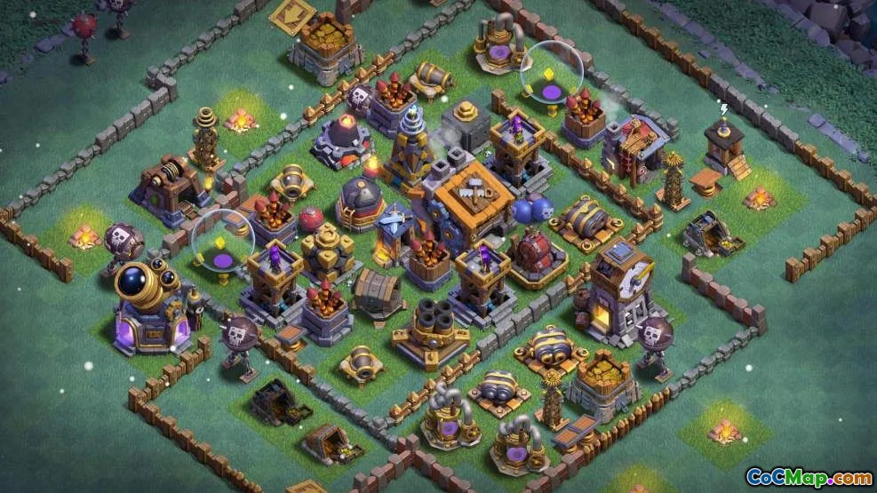 Builder -baser i Clash of Clans skiljer sig från vanliga bybaser, vilket kräver att spelare skapar unika layouter som rymmer de olika mekanikerna i spelet. I Builder Hall 9 har spelare tillgång till nya byggnader och defensiva strukturer, vilket möjliggör mer komplexa mönster. Baslayouter för denna nivå bör balansera stötande strukturer för att avskräcka angripare samtidigt som de säkerställer att nyckelresurserna är väl skyddade, vilket skapar en dubbel-bas bas som effektivt kan tjäna både jordbruks- och troféuppsamlingsbehov.