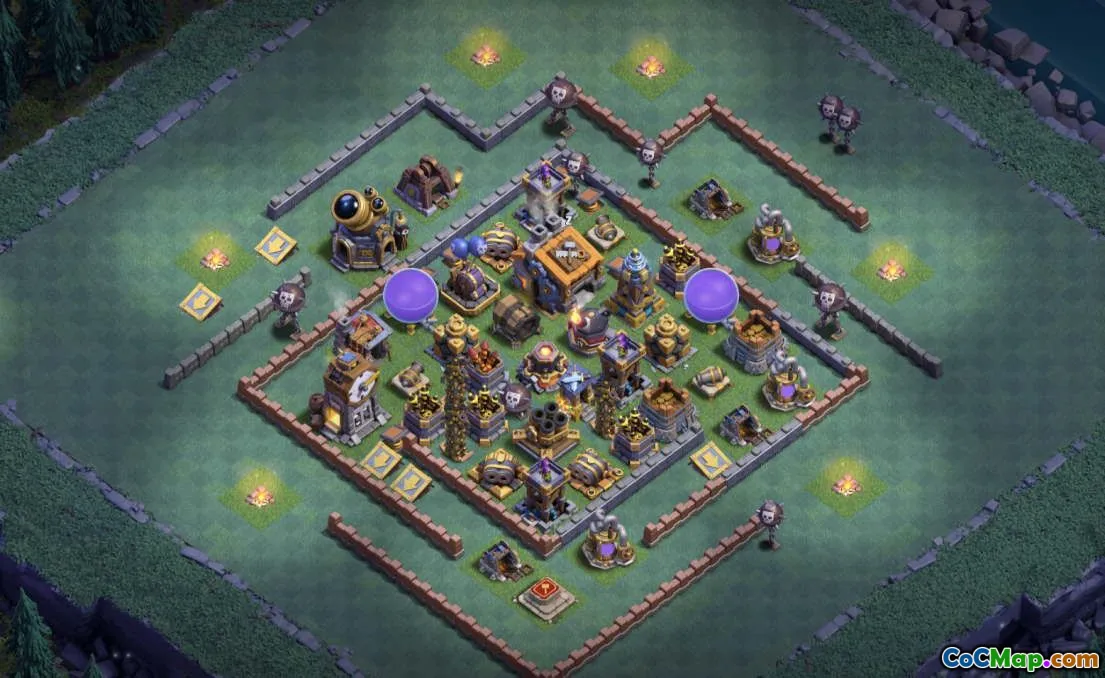 In Builder Hall 9, players have access to advanced defenses and troops that must be strategically arranged to withstand attacks while simultaneously allowing for effective farming of resources. Base layouts can be categorized based on the player’s goals; some designs may prioritize trophy protection by utilizing traps and defensive buildings, while others may focus on resource generation by protecting storages and collectors. This variation enables players to adapt their strategies according to their immediate needs in the game.