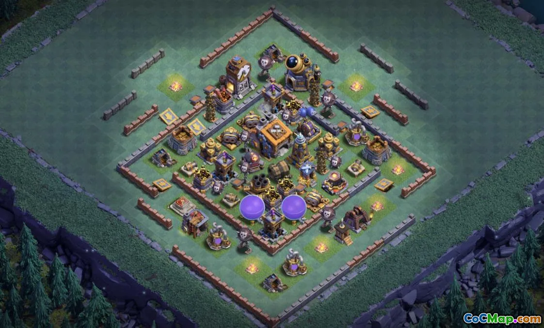 The Clash of Clans game features various base layouts, particularly for Builder Hall 9, where players can strategically design their builder bases to enhance defense and optimize gameplay. At this level, players can utilize unique buildings and troops that are unlocked, allowing for more complex and effective layouts. By carefully planning the placement of defenses and resources, players can create a base that is capable of withstanding attacks from opponents while simultaneously providing a strong foundation for farming and trophy hunting.