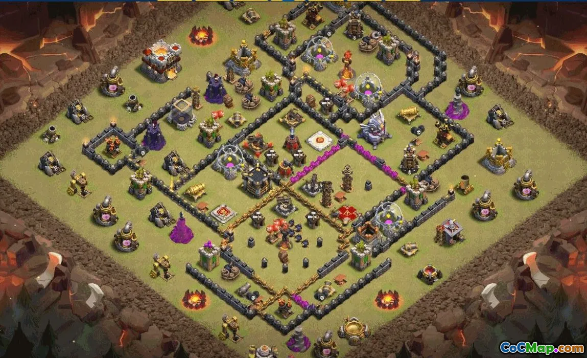For TH11 trophy defenses, the design slows Lavaloon and E-Drags by a ring of compartments that steer paths. In war, it offers near-symmetry for predictable target priority and scouting. For your clan, test small changes like moving a storage or trap to suit hero levels and siege styles. To reuse, simply use the built-in copy feature and adjust for your TH11 strategy.