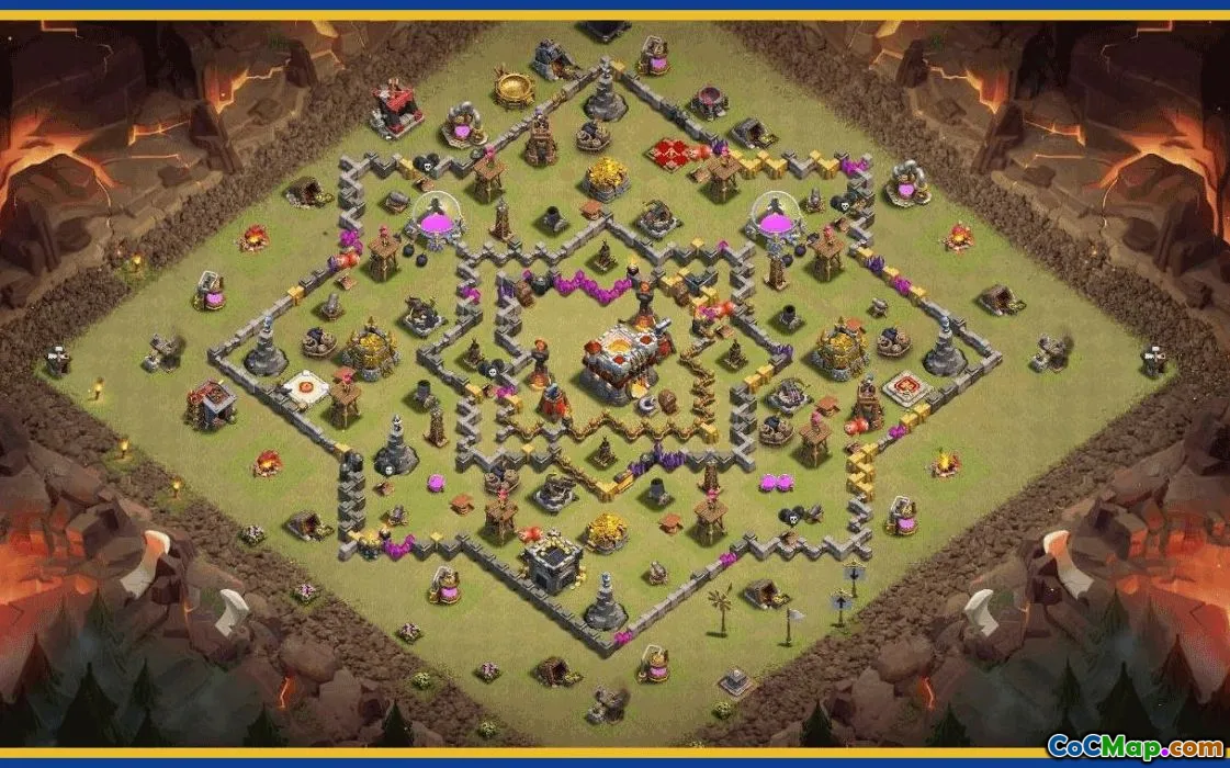 The design also features a well-planned home village setup and hybrid layouts that balance offense and defense. These bases are crafted to maximize the efficiency of troop deployment and resource retention while minimizing potential weaknesses against different attack strategies. The maps provided can be used as a reference to adapt and create personalized layouts suited to specific gameplay needs.