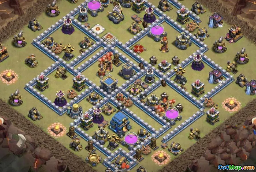 Moreover, the content emphasizes the importance of using the right base design depending on the player’s in-game goals. For example, war bases are typically designed to confuse and counter enemy attack strategies, while farming bases aim to safeguard resources from raids. The map layouts and other related configurations are provided to give players a comprehensive toolkit for customizing their village layout, making sure they can adapt to different scenarios and strategies.