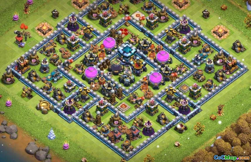 Spelare kan utforska olika kartor och layouter designade specifikt för olika spelstilar. Varje baslayout har sina fördelar och nackdelar och påverkar hur bra den presterar mot olika attackstrategier. Dessutom finns många resurser och samhällsforum tillgängliga online, och erbjuder en mängd basdesigner och kartor skräddarsydda för Town Hall 13, vilket hjälper spelare att förfina sina strategier och förbättra deras övergripande spelupplevelse.