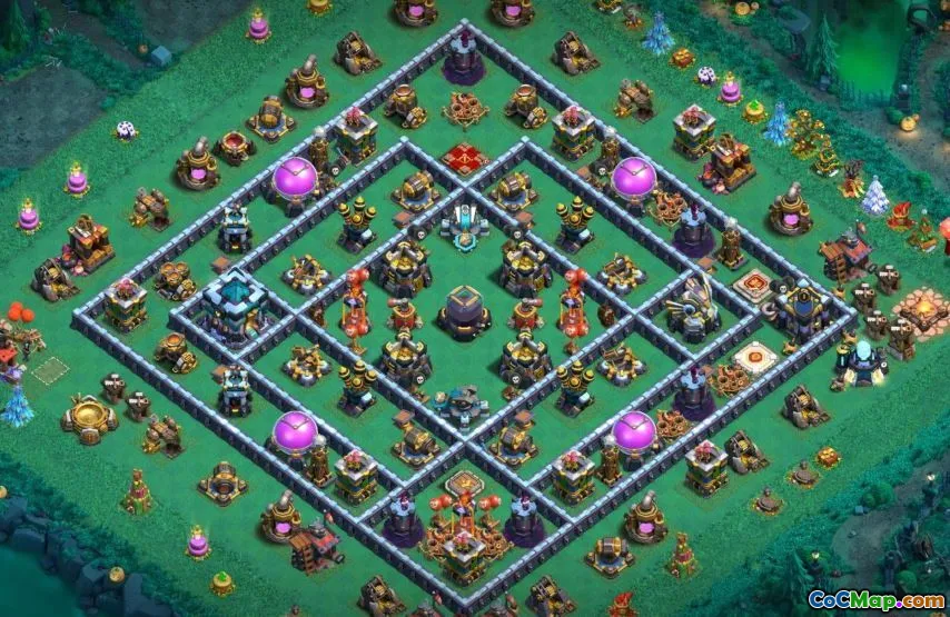 För rådhuset 13 specifikt har spelare tillgång till avancerade försvar och en rad strategier att överväga när de skapar sin baslayout. Jordbruksbaser är utformade för att skydda resurser, medan trofébaser prioriterar att vinna strider för att klättra upp i raden. Att hitta rätt balans mellan försvar och brott kan hjälpa spelare att lyckas och upprätthålla sina framsteg i spelet. Spelare letar ofta efter väl utformade kartor som ger en strategisk fördel under attacker och krig.